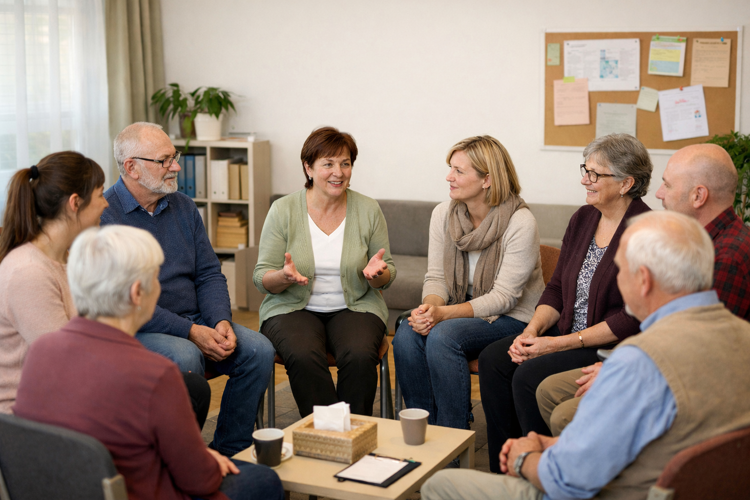 Der offene Gesprächskreis für pflegende Angehörige will in einer geschützten und vertrauensvollen Atmosphäre zur emotionalen Entlastung beitragen. Austausch, gegenseitiges Verstehen und Stärken stehen im Vordergrund.